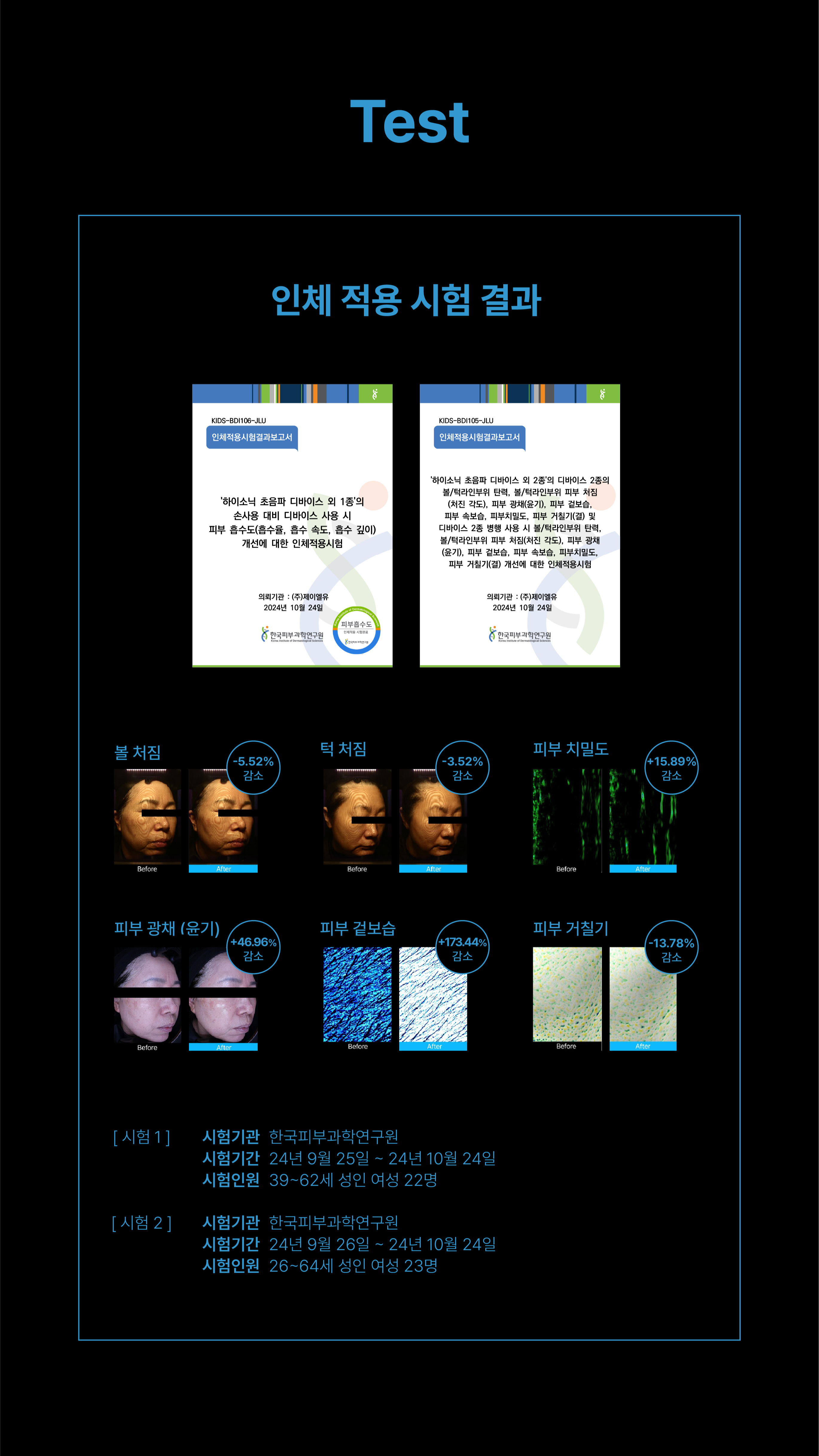 According to human application tests by the Korea Institute of Dermatological Sciences, effective for improving cheek and jawline sagging, skin density, radiance, surface hydration, and roughness.
