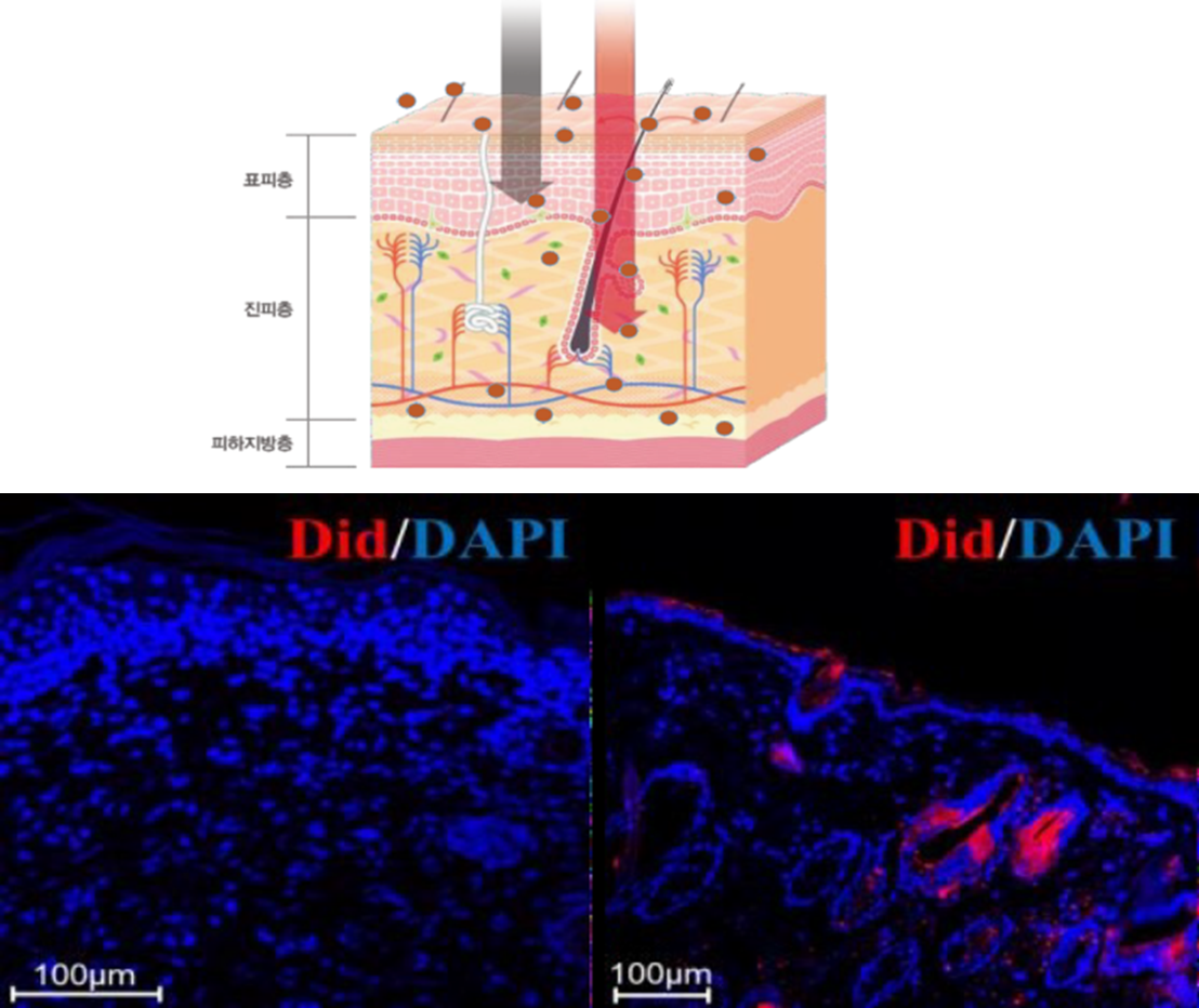 • The skin penetration ability of patented cultured exosomes can be confirmed in the skin tissue penetration image, where exosomes are shown in red on the right.
