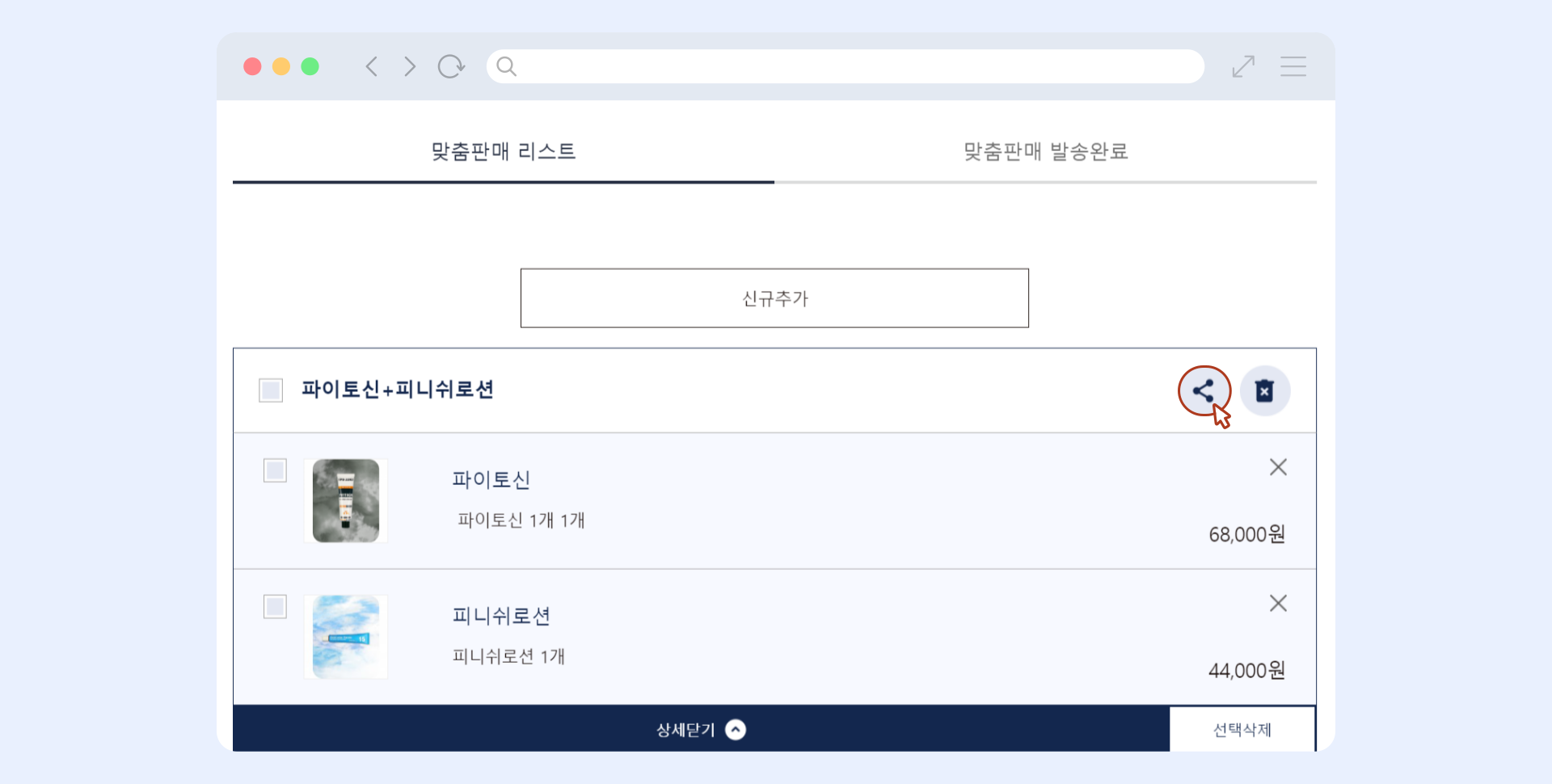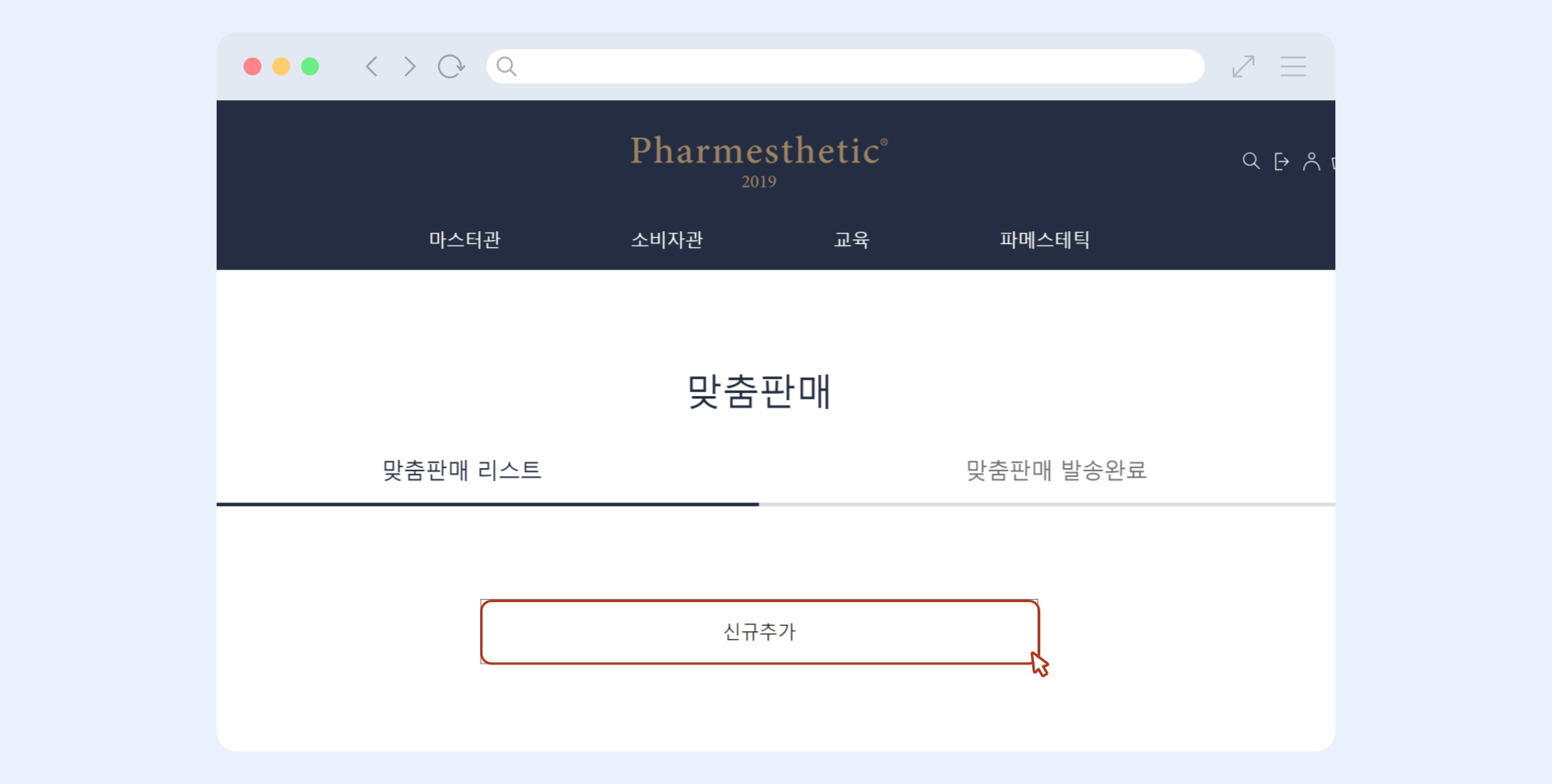 맞춤판매리스트 페이지에서 신규 추가 버튼을 눌러주세요.