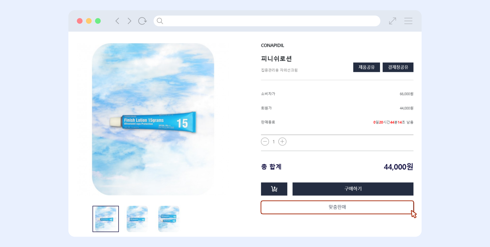 맞춤판매리스트에 담고 싶은 제품의 페이지에 접속하여 구매하기 아래에 위치해 있는 맞춤판매 버튼을 눌러주세요.