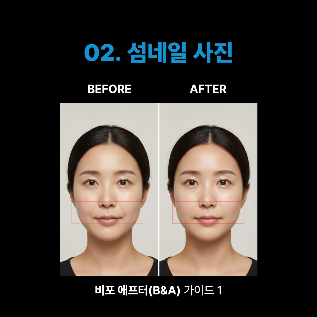 모든 콘텐츠의 썸네일은 슈퍼젝션 디바이스 L-SONIC 사용 전&후(B&A)로 설정해야 합니다.