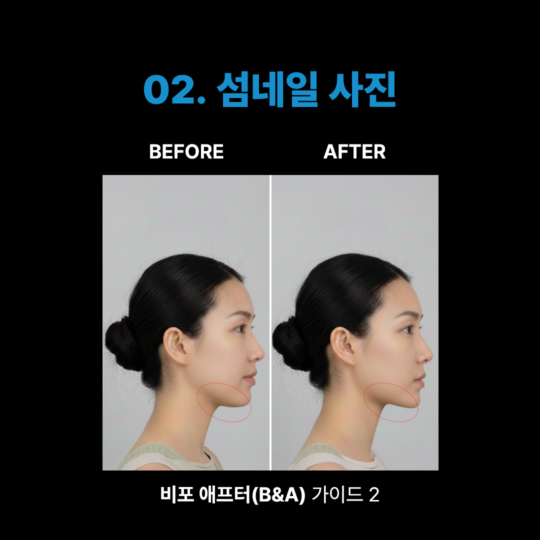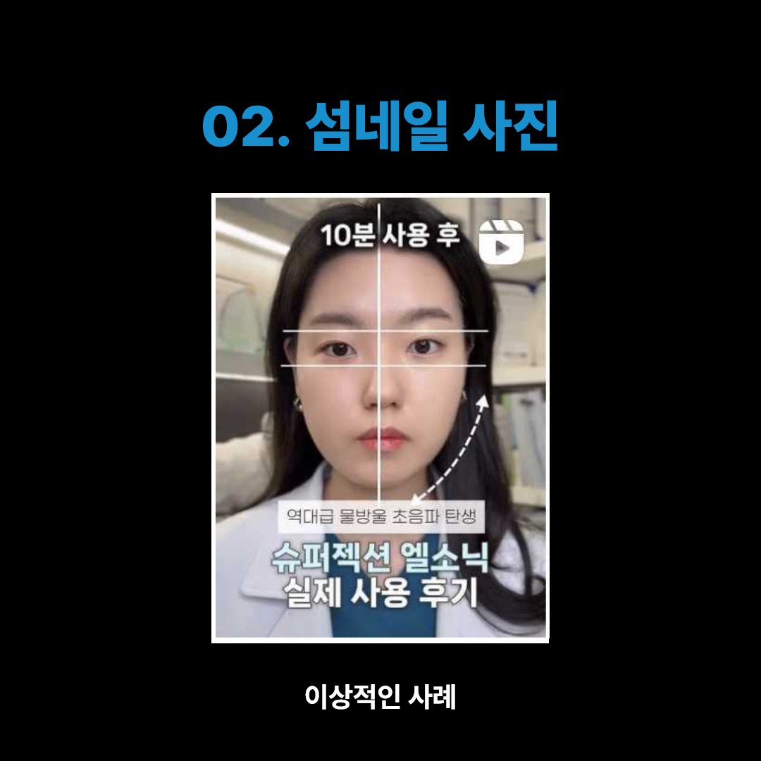 모든 콘텐츠 내 슈퍼젝션 디바이스 L-SONIC 사용 전&후(B&A) 사진 또는 영상을 반드시 포함해야 합니다.