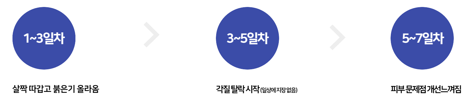 72hr 동안 피부에 작용하여 피부의 새로운 활성화가 일어나 묶은 각질을 밀려올려 탈락시키는 원리