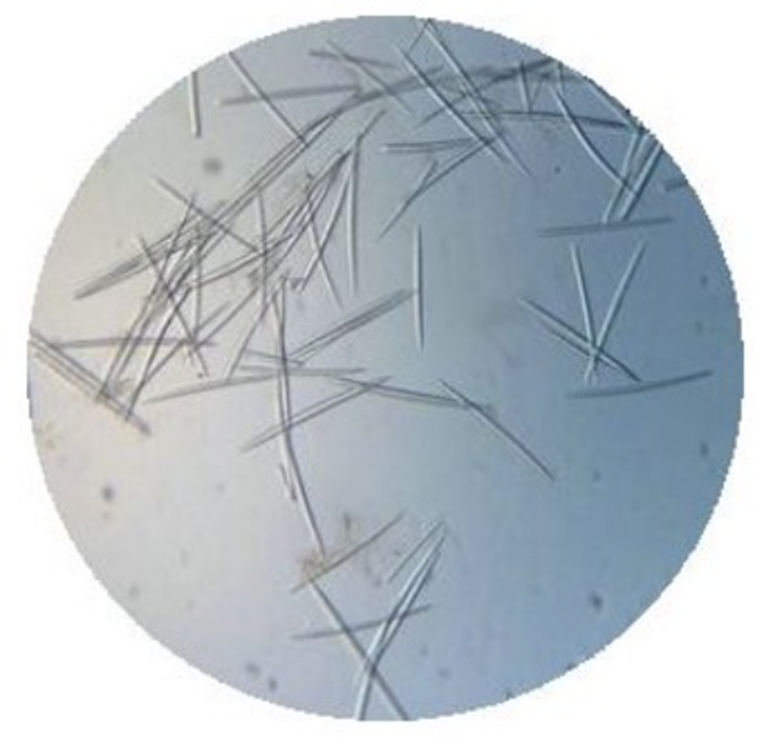 기하학적 형태가 많으나, 화장품에서는 막대모양의 가장자리 바늘 형태의 골편을 사용한다.
