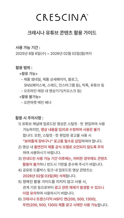 크레시나 HFSC 트랜스더믹 맨(200, 500, 1300), 우먼(200, 500, 1300) 광고 시에만 사용 가능합니다.