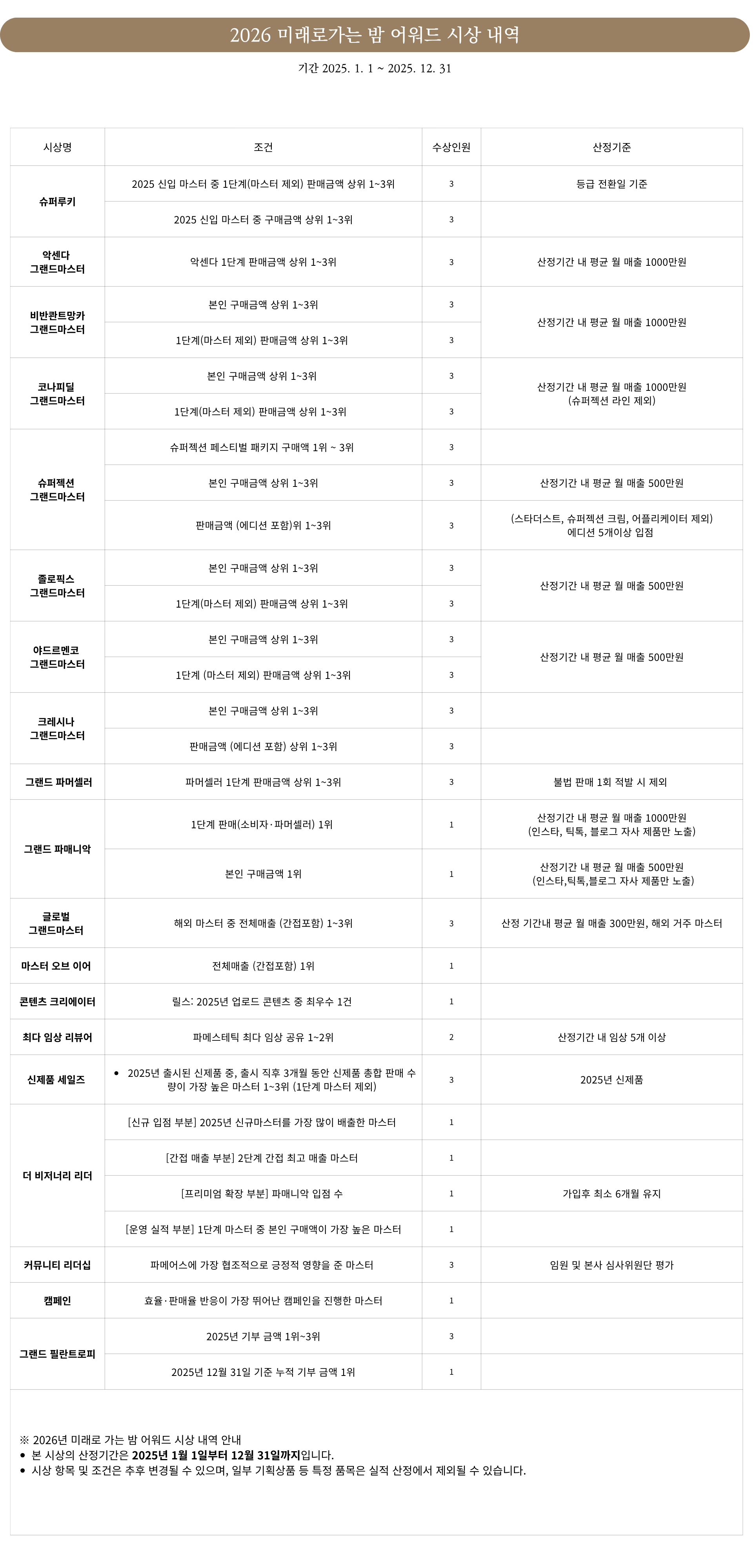 해당 어워드는 2025년 1월 1일부터 12월 31일까지의 주문 건을 기준으로 집계되며, 시상은 2026년 6월 19 예정인 ‘미래로가는 밤’ 행사에서 진행될 예정입니다.
